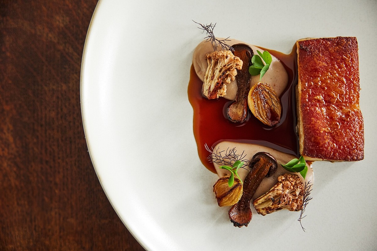 烤乳豬是義大利北部Emilia-Romagna地區於慶典時享用的傳統美食,Chef Lance結合同為廚師的母親拿手廣東老菜「芋頭炆豬肉」風味創意演繹,展現東西交融美味並對母親致敬。選用彰化胡蘿蔔飼養六個月大乳豬,先以杜松子、黑胡椒、柳橙等醃製四小時後蒸煮四小時,低溫慢煎再香烤,造就皮脆肉嫩;佐以啟發自「芋頭炆豬肉」蔥油、蝦米、大甲芋頭等元素製成之鹹香綿密芋泥,及濃香肉汁、巴西蘑菇、小洋蔥、醋漬白花椰享用,齒頰留香。 NT2,600元