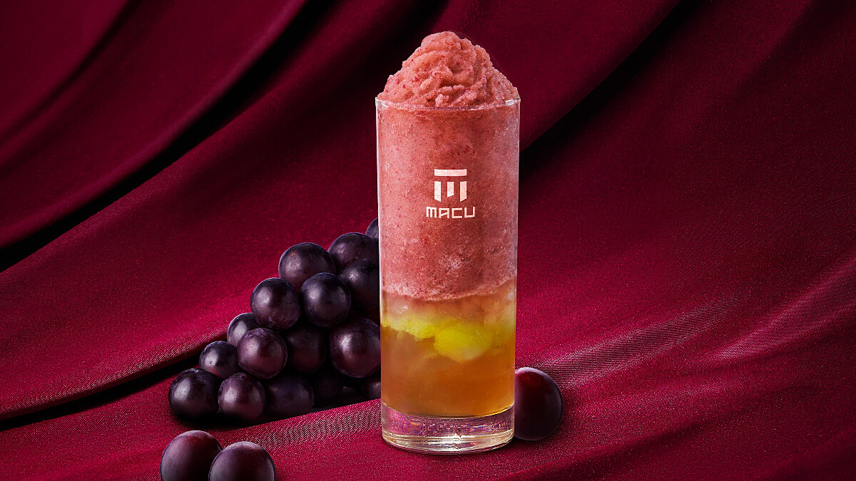 以馥郁紫色葡萄冰沙為基底,霸氣豪邁加入葡萄果肉、爽脆波波以及自製綠茶凍。透過轉速控制打出細緻冰沙,並帶著濃郁葡萄香氣,底部鋪滿綠茶凍再用脆口波波與新鮮葡萄果肉,真的會讓人不知不覺喝完一整杯。