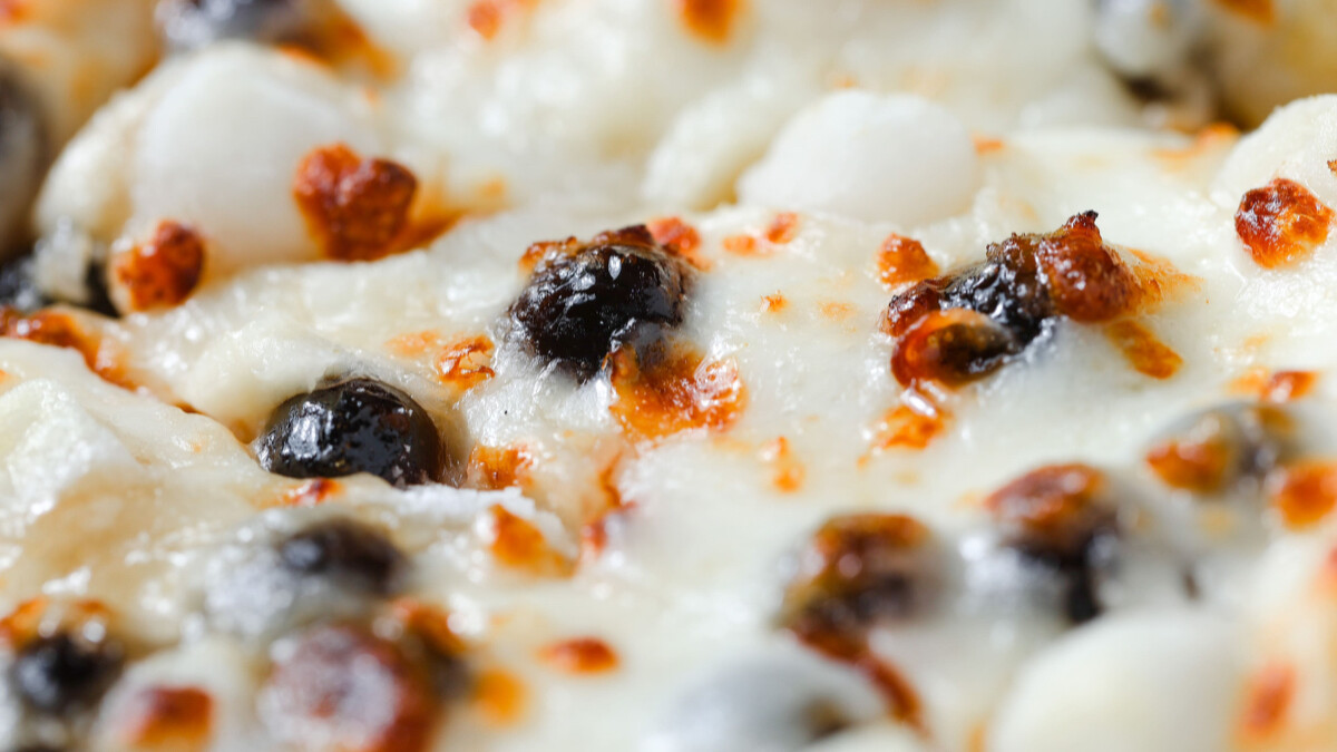 「香濃巧克力滋心珍珠披薩」餅皮放滿黑糖珍珠與麻糬,外圈則選用達美樂經典巧克力滋心,香濃比利時巧克力與鮮奶製作而成的莫扎瑞拉起司,出爐後巧克力香味四溢,最後再淋上蜂蜜糖漿,每一口都甜蜜在心頭。