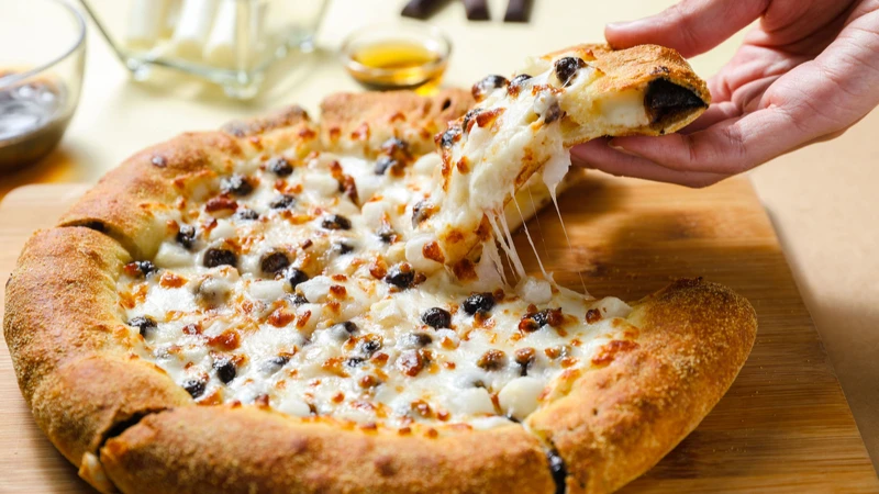 2019年造成話題的達美樂黑糖珍珠披薩,2023年升級版直接加入「巧克力滋心餅皮」甜甜回歸,外圈搭配香濃滑順鮮奶製作而成的莫札瑞拉起司條與香濃比利時巧克力,包裹在純手工拍製麵皮內。達美樂為了滿足廣大螞蟻人的味蕾,香噴噴出爐後更附上蜂蜜球,熱熱的披薩淋上蜂蜜球每一口更是甜蜜破表。