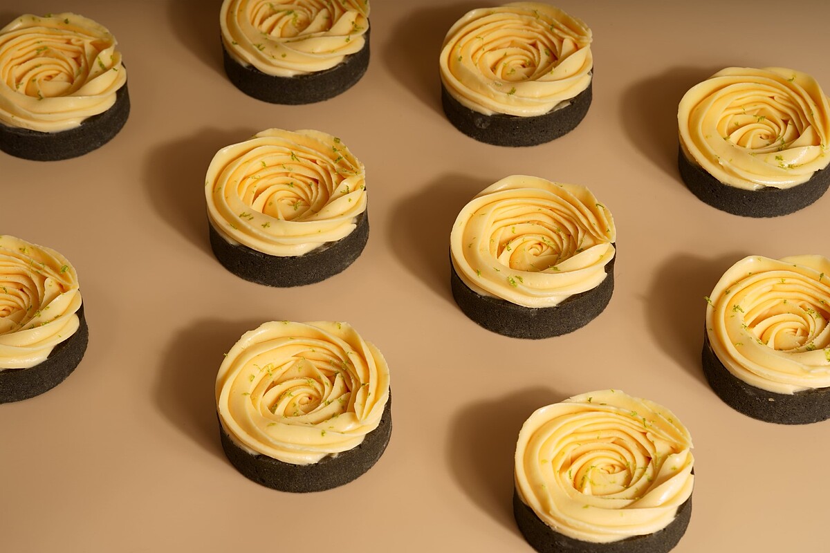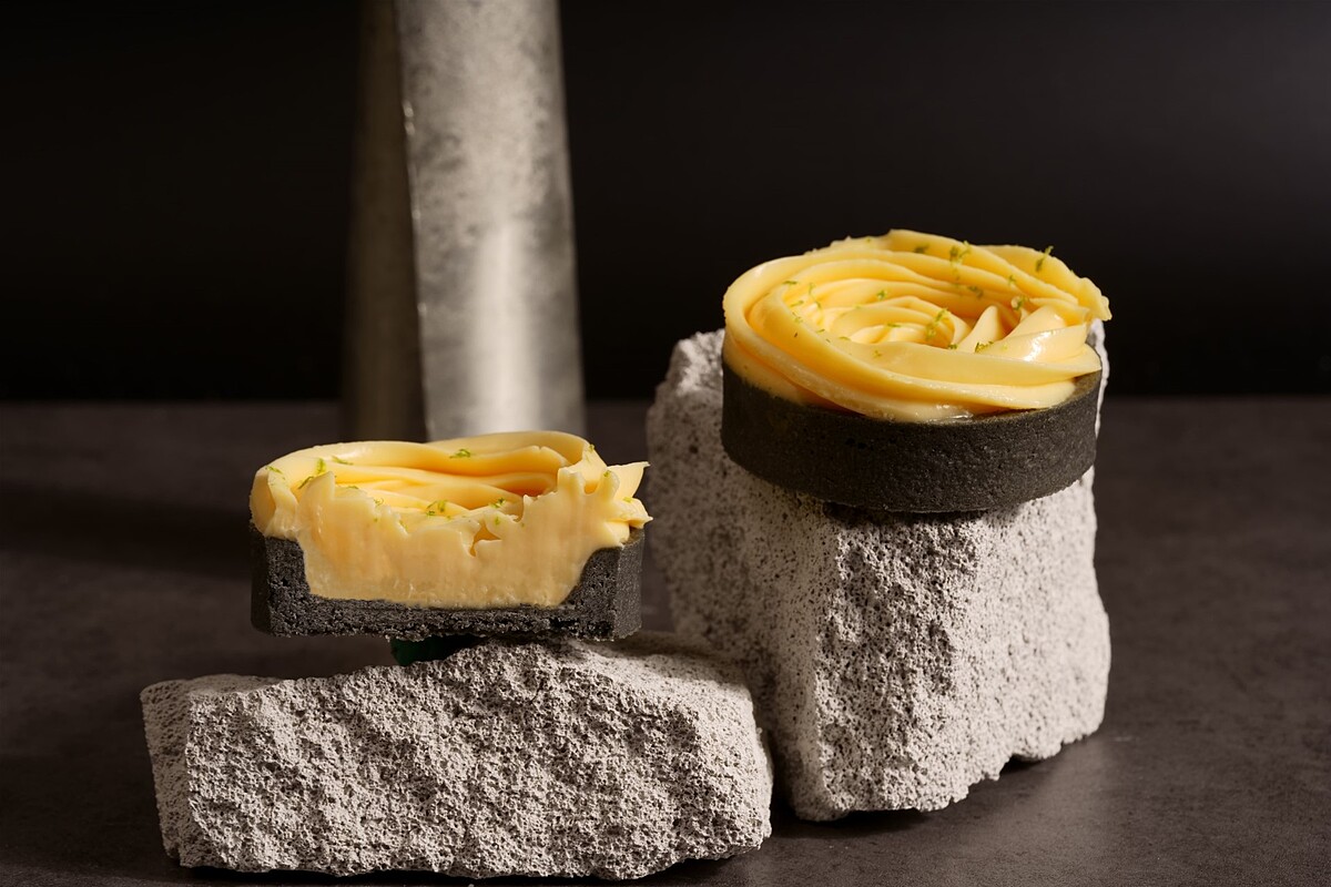 可以看到這款「黑金檸檬塔」呈現黑曜石調般的塔皮底座,使用法國產區限定奶油及台灣產區蜂蜜,四季檸檬調製檸檬香餡,入口之後酸中帶甜的柔滑口感,加上酥脆塔皮,絕對是難以抗拒的美味。