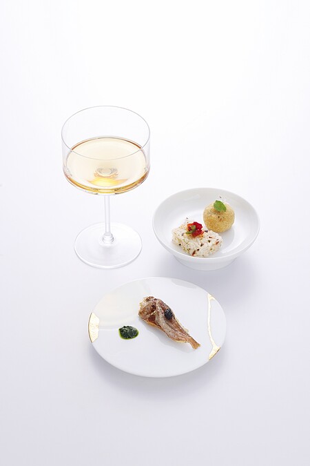 以 Bodegas Tradicion VORS 30 years Old Palo Cortado 所調製的開胃酒,向大航海時代的迷人風味致敬,富有蜜餞、杏仁的香甜以及豐富的辛香料風味。搭配上複雜而深邃的三道開胃小點,就像是開啟了一場味蕾的冒險之旅。(Photo:Bodegas Tradición)