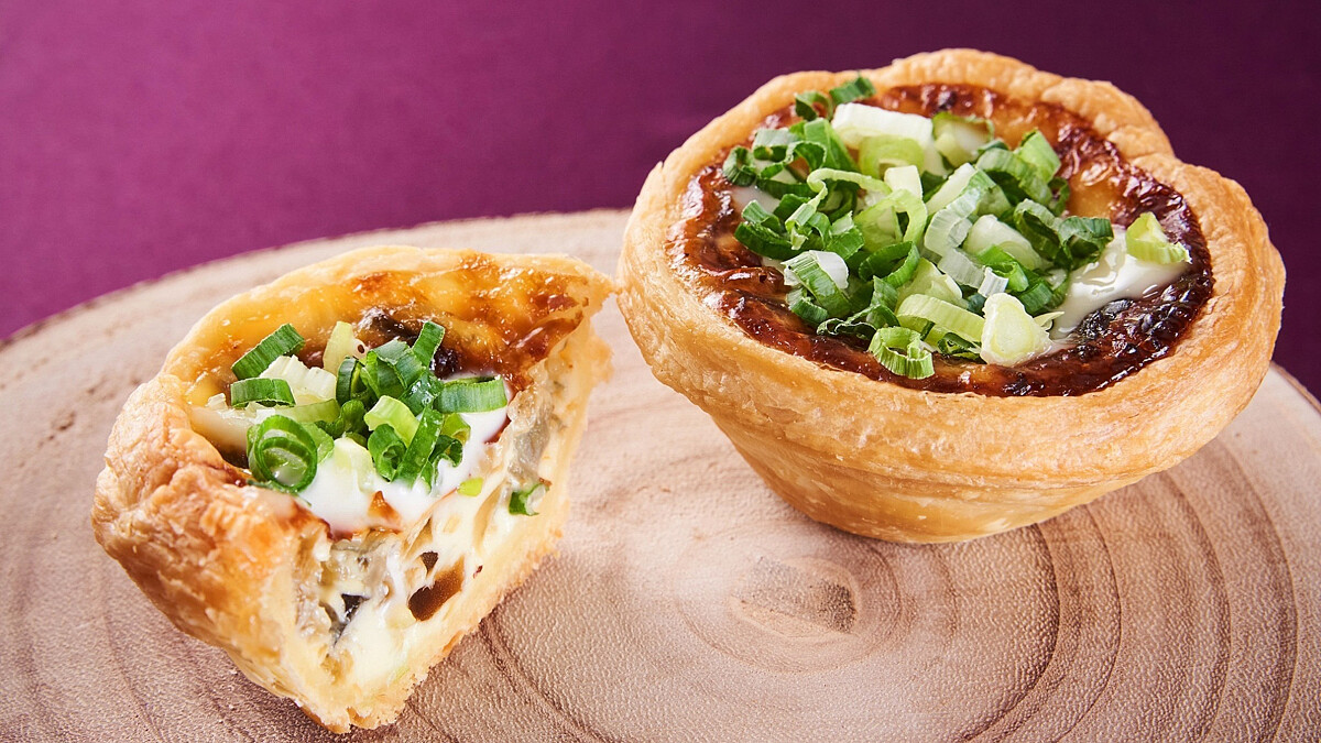 甜鹹口味交錯的「調皮搗蛋蛋撻」以經典 163 層酥脆撻皮為底,現烤出爐的酥脆外皮裹住柔滑奶香內餡及鹹香馥郁的綿密皮蛋。淋上香甜美乃滋,再佐以新鮮青脆蔥花,每咬一口都是滿滿衝擊。