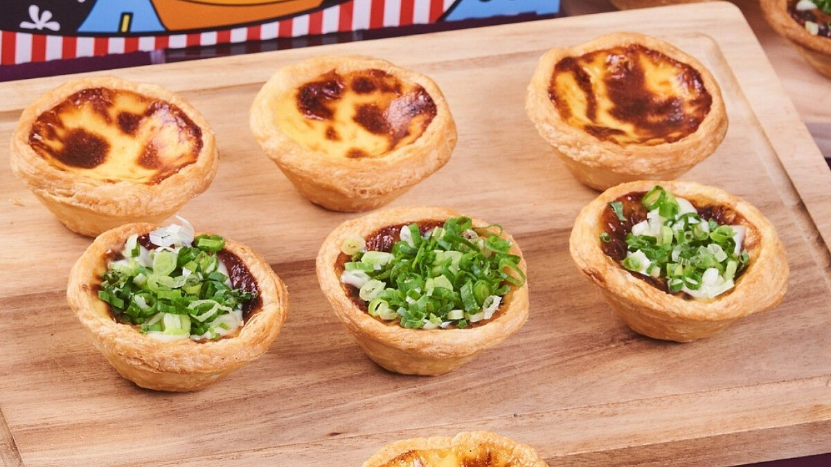 「調皮搗蛋蛋撻」將蛋撻、皮蛋、蔥花組成恰到好處的甜鹹完美平衡,香草卡士達的甜蜜滋味搭配Q彈綿密的皮蛋,還有青蔥的爽口餘韻,一入口,香Q濃郁的多層次口感不帶一絲猶豫在口中迸出新滋味。