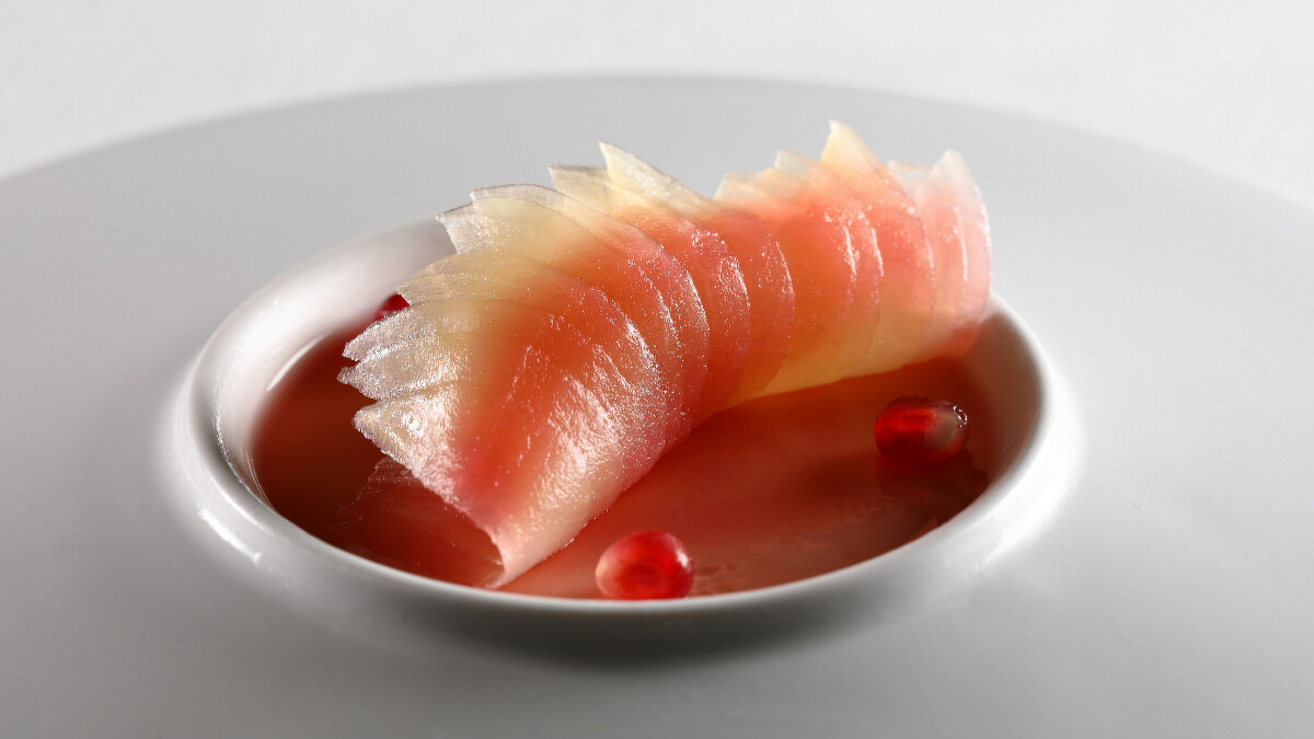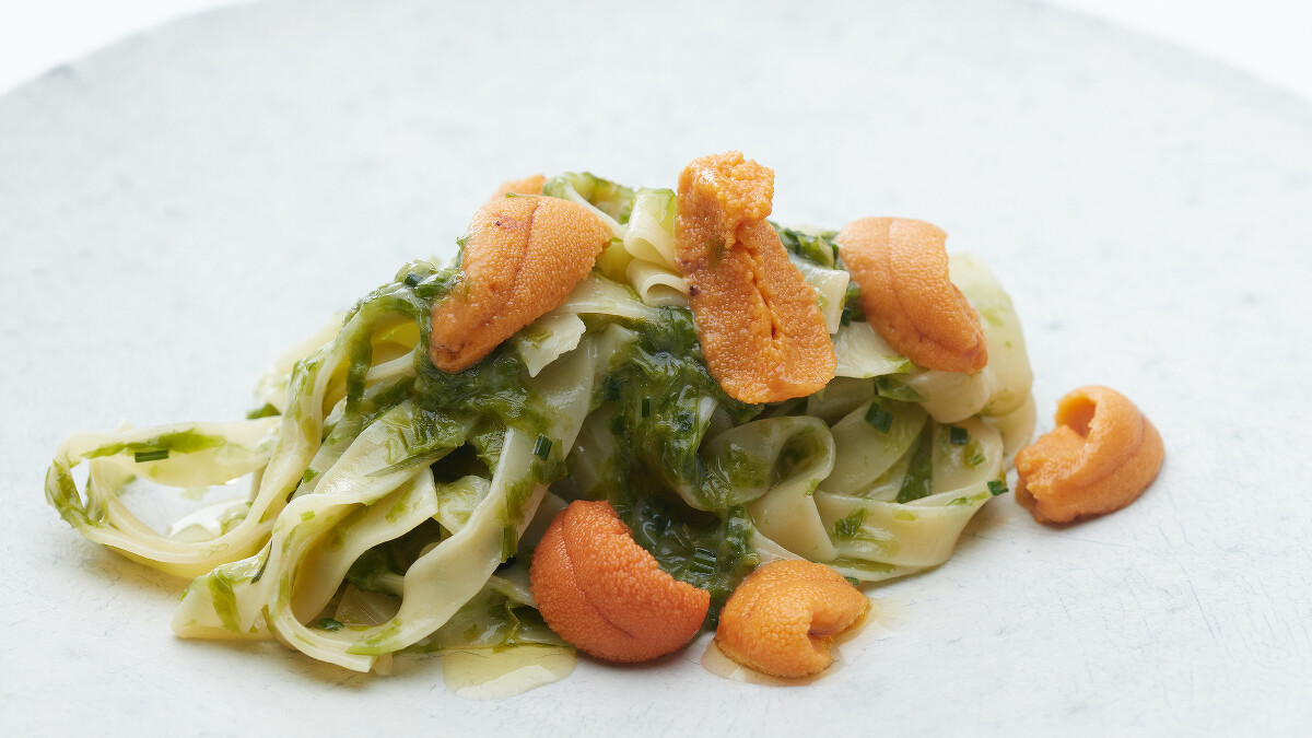 佐藤秀明將一展廚藝,開胃菜「日本障泥烏賊、酪梨塔塔、Osietra魚子醬」融合香氣、口感、味道於一體的日本障泥烏賊擁有紮實且甘甜的口感,佐切丁酪梨塔塔與Osietra魚子醬增添其濃郁口感、開啟這場美味盛宴的味蕾序幕。「自製手工麵、青海苔醬、馬糞海膽」手工製的麵條口感黏糯,完美吸收海苔醬鹹鮮與馬糞海膽的濃郁甘甜,豐富多層次口感深刻衝擊味蕾。「北海道毛蟹、甜玉米、肯瓊醬」選用以鮮美蟹肉聞名的北海道毛蟹,外層以清甜的玉米包裹,底層舖著酸甜兼具的肯瓊醬汁,兩相結合形成一道充滿層次又平衡味蕾的料理組合。