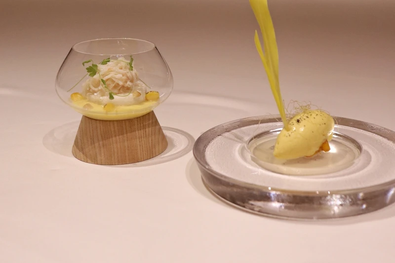 台北 Fine Dining 巴黎廳1930X高山英紀再度獲得《2023台灣米其林指南一星餐廳》肯定,為迎接食慾之秋,推出「暮秋鞠韻・漁豐雅茗」秋季套餐,以秋日食材之豐為經、法式料理為緯,透過新上任料理長緒方 雲(Kumo Ogata)之手,傳遞高山英紀主廚精練簡約方式展現飲食真諦,承襲過去「以茶入菜」元素,加入精選當季海味珍饈展現精湛廚藝,此次亮點食材「玉米」「乳鴿」「桂花」皆成為迸發風味驚喜的重要關鍵,也為秋日氣息增色不少。