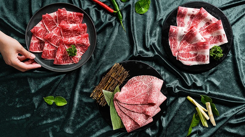 肉品方面有頂級鍋物店必備的日本鹿兒島A5黑毛和牛的極上牛小排、肩胛部位,以及澳洲M9+和牛的和牛極上雪花等。豬肉有充滿細緻核果芳香的西班牙伊比利豬,以及肉質精細軟嫩,五花部位更是上乘之選的台灣神農1983黑豚,帶來不吃牛之外的絕佳選擇。