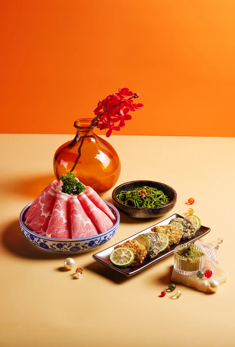 「鉑金饗」另一大亮點,即是時令鮮甜肥美的秋蟹,精選飽滿的蟹身與蟹腳,涮煮後即可品嚐到秋蟹的甘甜鮮美。口感鮮嫩彈牙,香甜多汁的「OMEGA 亞麻籽豬肉」則選自雲林經營65個年頭的無毒農場,以亞麻籽作為動物飼料,定期檢驗,不使用抗生素,無萊克多巴胺、無藥物殘留,營養、香甜、肥瘦均勻、肉質鮮嫩,同時兼顧食材的美味與安心。