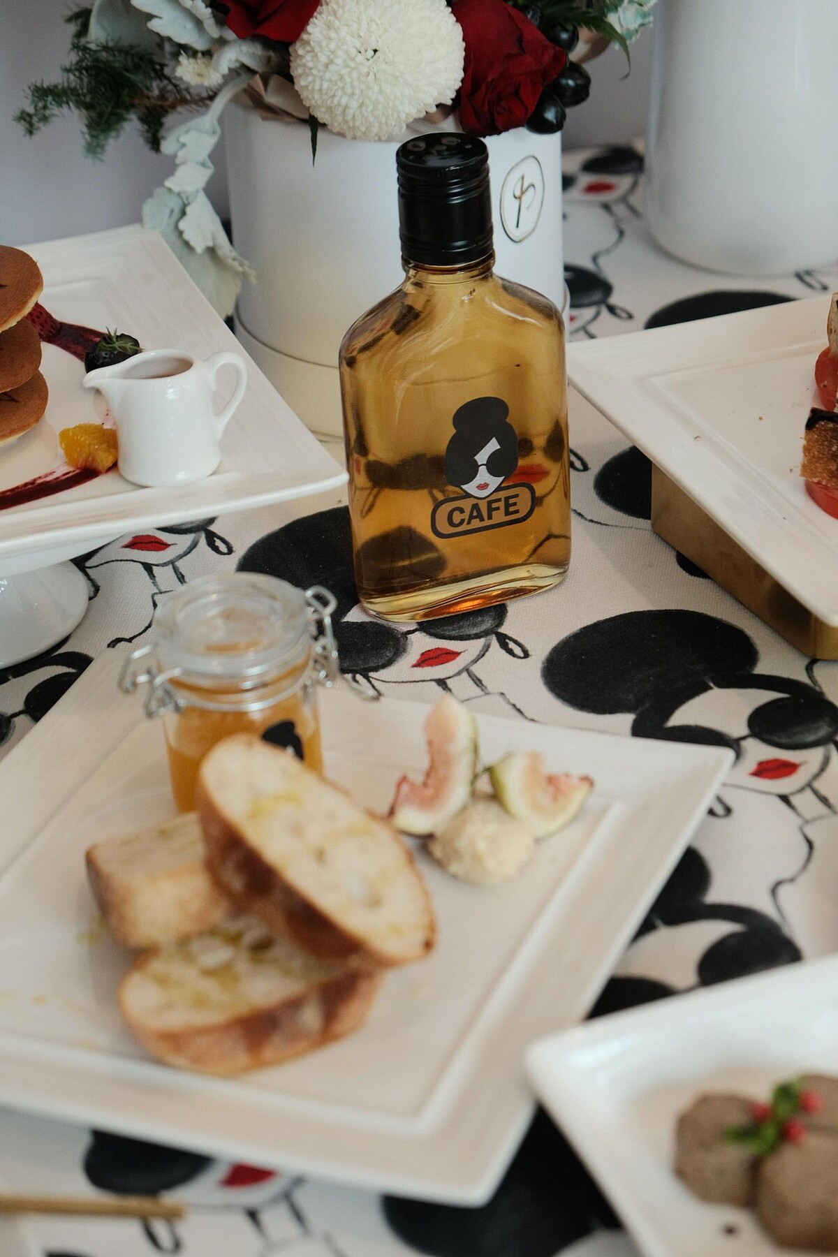而在alice + olivia café台灣店,也能喝到採完全預約制的茶飲名店小隱茶庵主理人Lily陳衣安的精選好茶,包含「舞紅-保加利亞玫瑰紅茶」、「丹素-新竹東方美人」、「山泉-龍眼花蜜茶」、「清新-薄荷舒定茶」、「忍冬-金銀花草茶」,並用可愛的墨鏡娃娃茶瓶裝,外帶一瓶就對了!