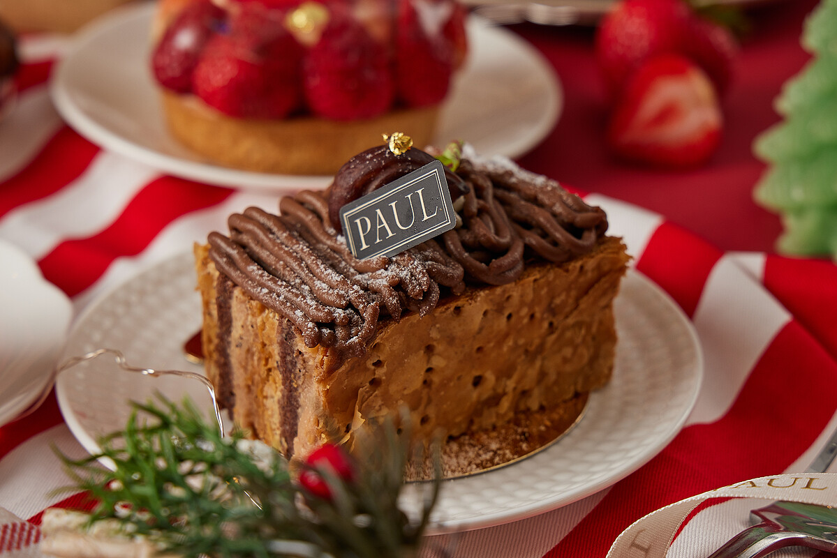 大人系甜點的「蒙布朗伯爵巧克派」,嚴選法國直送的千層派皮發揮,搭配香濃巧克力、栗子結合鮮奶油打造濃郁口感。同時,PAUL也推出超應景的「草莓雪人泡芙」,以法國直送的泡芙殼為主軸,加入杏仁片打造脆感泡芙,再夾入新鮮草莓擠上香濃奶油香緹餡,泡芙點綴上靄靄白雪與矢車菊,為年末增添一絲奢華儀式感,神級美味,必須分享!