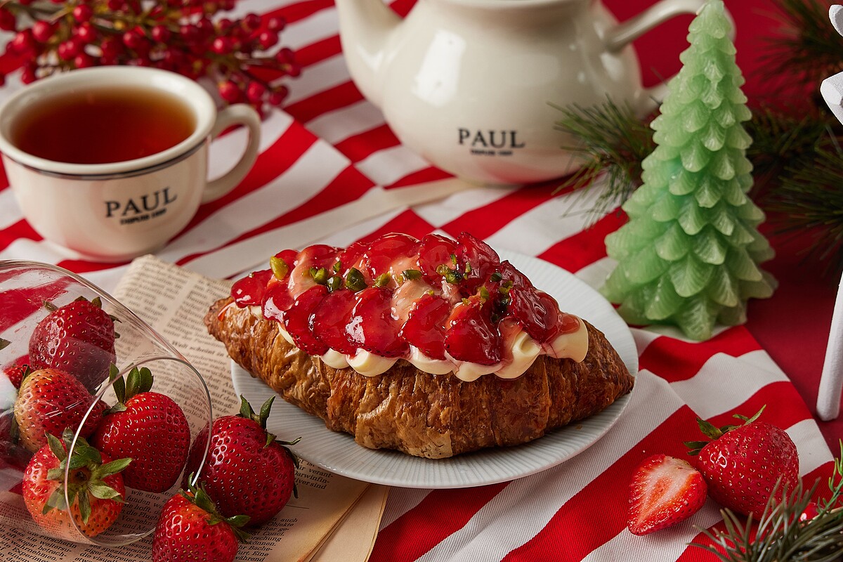 聖誕系甜點沒有草莓怎麼可以!PAUL帶來全台最好吃的法國可頌,麵糰不斷反覆翻摺打造蓬鬆口感,並結合冬季草莓與濃郁香草餡,酸甜迷人,讓人難以抗拒,超級療癒!