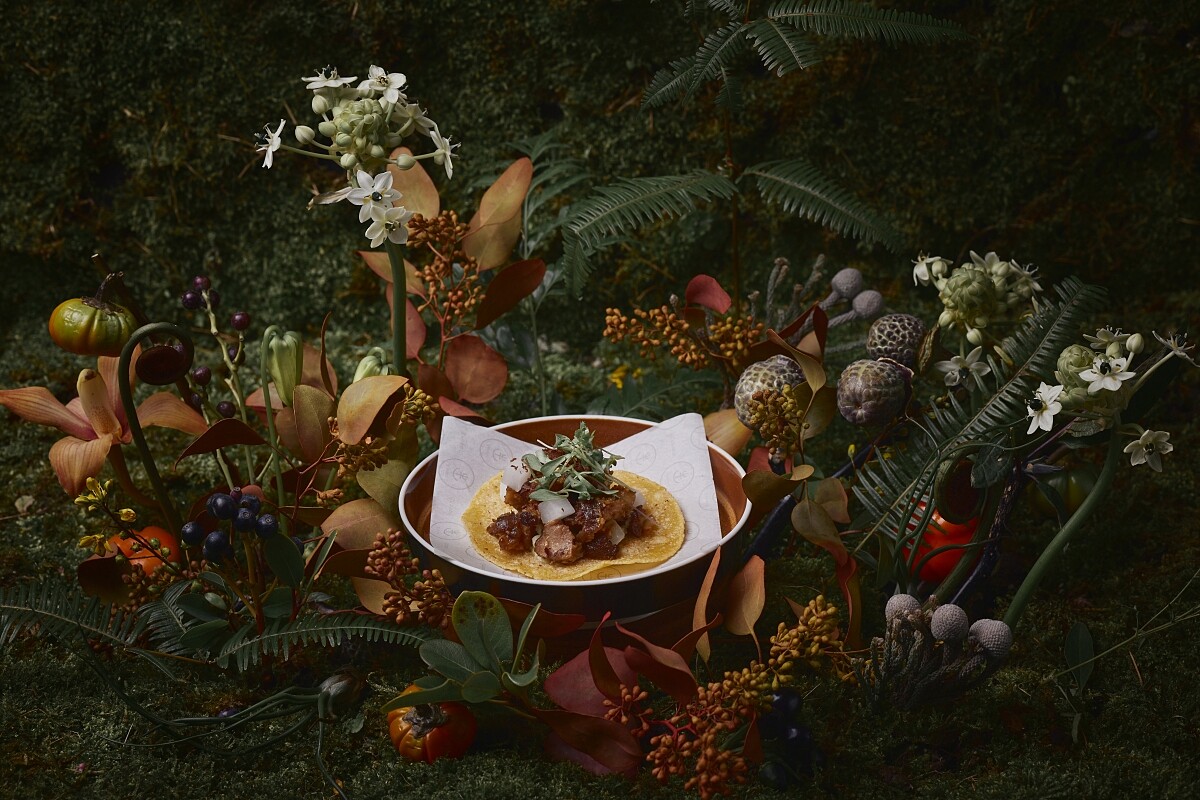 充滿墨西哥風情與台味魅力的菜品,料理驚喜地將墨西哥國民美食與台灣本土風味巧妙融合。特選用膠質豐富的豬腳肉,以八角香料等中式烹飪手法燉煮入味,堅持手工製作的TACO玉米餅,底部抹上每日鮮製的優格醬,不僅帶來清爽口感,上方綴上自製辣蘿蔔及莊園級巧克力雪片,為整體味覺帶來了豐富想像。不論是單獨品嚐或佐餐搭配美酒,絕對都能為您帶來驚喜與滿足!