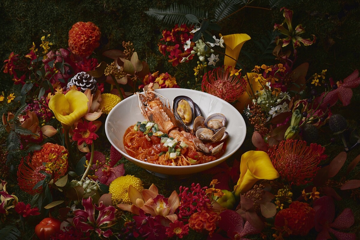 由廚藝團隊此回研發自製的紅油番茄糊為這道料理帶來獨特辣味和酸甜風情,充滿鮮味的蝦汁更是增添了濃郁的風味,Spaghetti細麵吸裹了湯汁的精髓,每一口濃郁都在刺激著味蕾的覺醒,鮮美多樣的時令海鮮更為此道菜品帶來屬於太平洋島國的豐盛精彩。