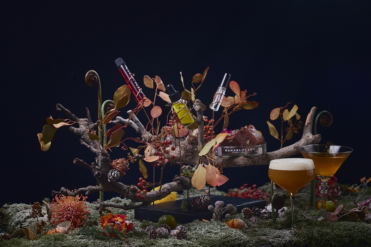 gubami Social 獨家打造桌上型花藝藝術裝置來呈現「煙花未冷・Social覺醒—限定飲品甜點節慶組合」,以兩款台灣茶為基底之無酒精特調,搭配了三種DIY互動裝置:茉莉花噴霧、香草油滴瓶和莓果龍舌蘭試管,每位顧客皆可調配出屬於自己的專屬特調;而濃醇香的巴黎山胡桃布朗尼甜品則為這場美食饗宴的觸動延續著難以忘懷的回聲!