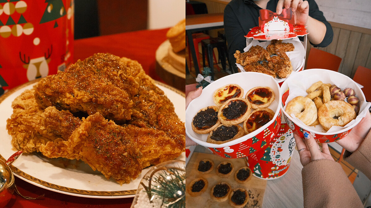 「聖誕巨大桶」除了有「年度限定聖誕瓷盤」、日本直送「金黃比司吉」,還有兩款台灣獨家且期間限定上市的「楓糖香蒜脆雞」、香醇柔滑「金燦鹽之花可可蛋撻」,鹹甜鹹甜的滋味讓炸雞控&蛋撻控都直呼過癮。