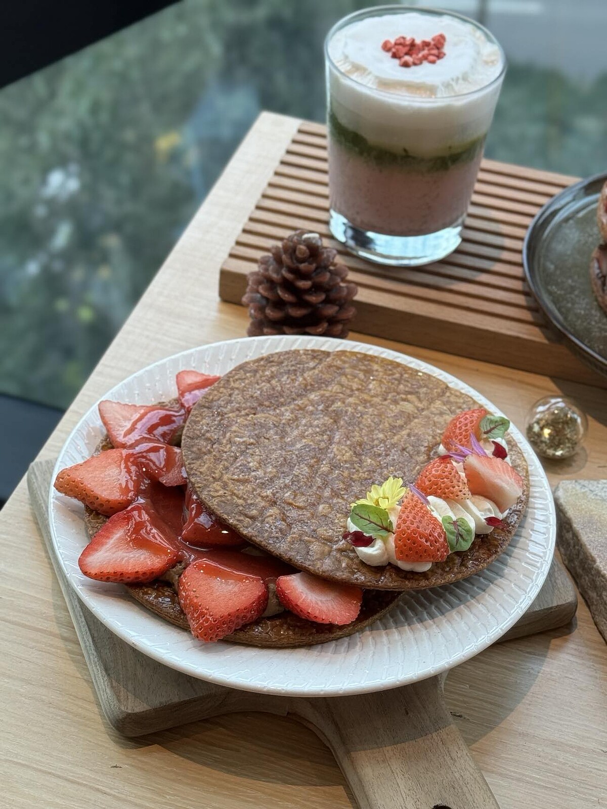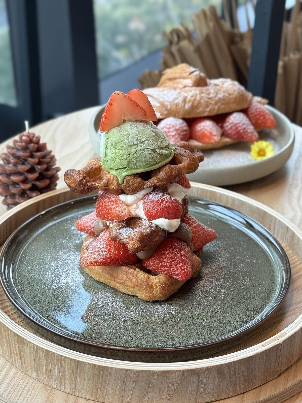 這次《勺日zhuori》的草莓新品中,最吸睛的肯定是「草莓聖誕Tree」,剛好適逢耶誕前夕,打造出一顆小型甜點聖誕樹,選用百花蜜香緹及莓果阿薩姆餡,配上可頌鬆餅以及抹茶冰淇淋,還有滿滿的草莓,是本季不能錯過的甜品。
