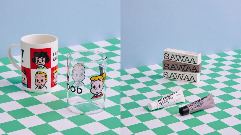 此外,也同步推出與台灣手工貼花工藝品牌COZU Lab.合作開發的聯名圖案馬克杯、玻璃杯,以及與SAWAA聯名包裝的「方舟舒緩護手霜」與「慕橙保濕乾洗手」,都超適合當作交換禮物之選。