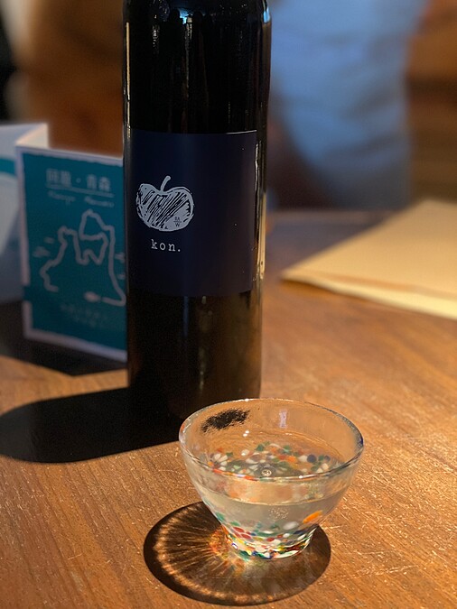 以生米為原料,加入青森蘋果外皮作二次發酵,除了濃烈的米香,尾韻卻又帶著蘋果的酸甜風味。