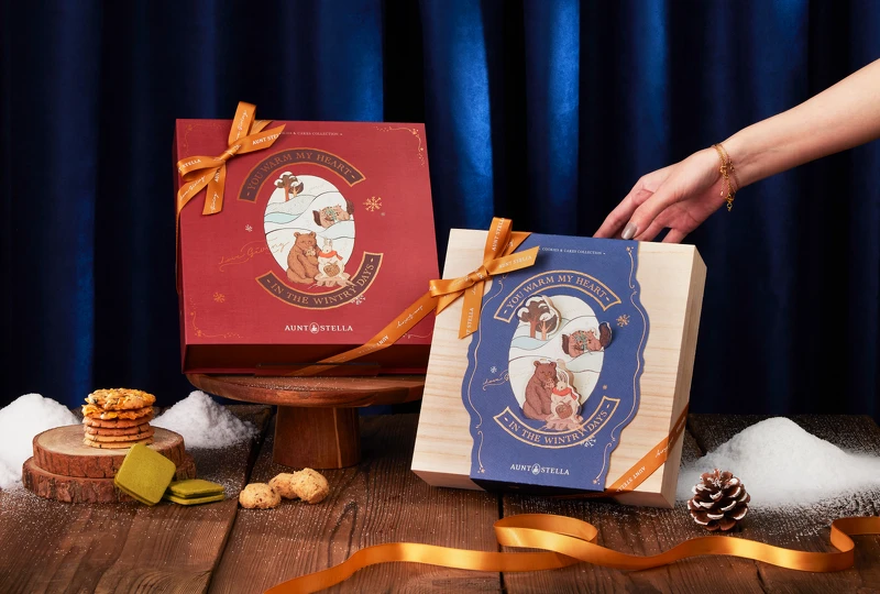 為因應眾多企業行號選購獨特冬季禮盒的需求,Aunt Stella 詩特莉同步提供全方位企業客製服務,包含吊卡、袖套、木盒、以及鐵盒,皆可客製印刷設計,打造獨一無二的質感禮盒,為收禮者傳遞別具心意的問候,更承載了一份溫暖與關懷。即日起預購,快把握早鳥優惠提前下訂吧!