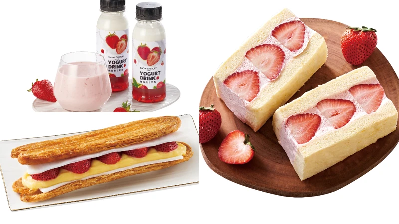 7-11和甜點名店、人氣團購攜手合作,從草莓甜點、糖果、餅乾及飲料一應俱全,包括滿滿草莓切片的「法式卡士達草莓塔」、酥脆千層包覆香甜草莓的「法藍四季草莓千層酥」、「Sugar miss糖思日式香堤草莓蛋糕三明治」、「TU∙TU草莓凍乾杏仁牛軋糖」、「雪坊精品草莓優格飲」等粉紅系甜點,讓你的冬天充滿草莓氣味的粉紅泡泡。