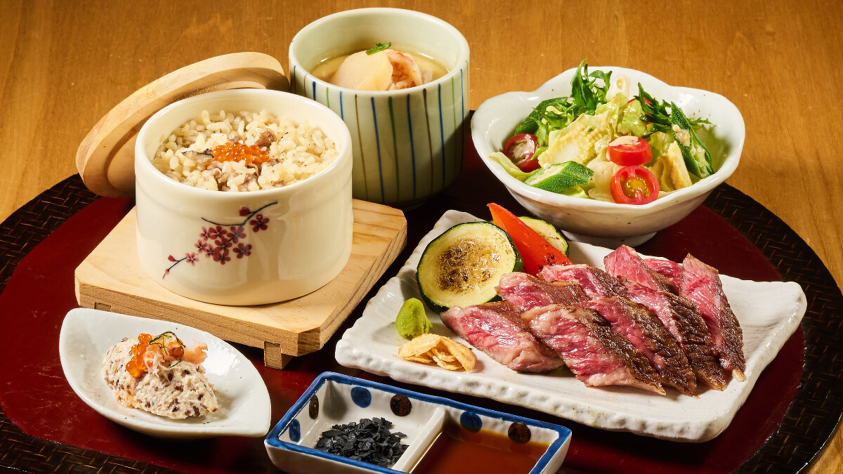 無骨牛小排搭配日式牛肉炊飯、干貝鮮蝦茶碗蒸、開胃前菜與時蔬沙拉,柔嫩牛小排搭配一口炊飯,不但不會讓人覺得油膩,還會口齒留香,套餐售價1099元。