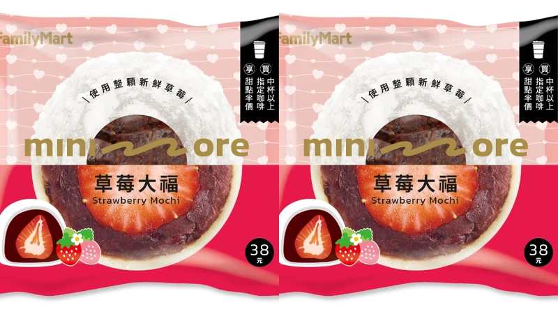 包入整顆新鮮草莓鮮果,酸甜多汁,搭配Q軟大福皮與紅豆餡,一口咬下濃郁爆擊,售價38元。