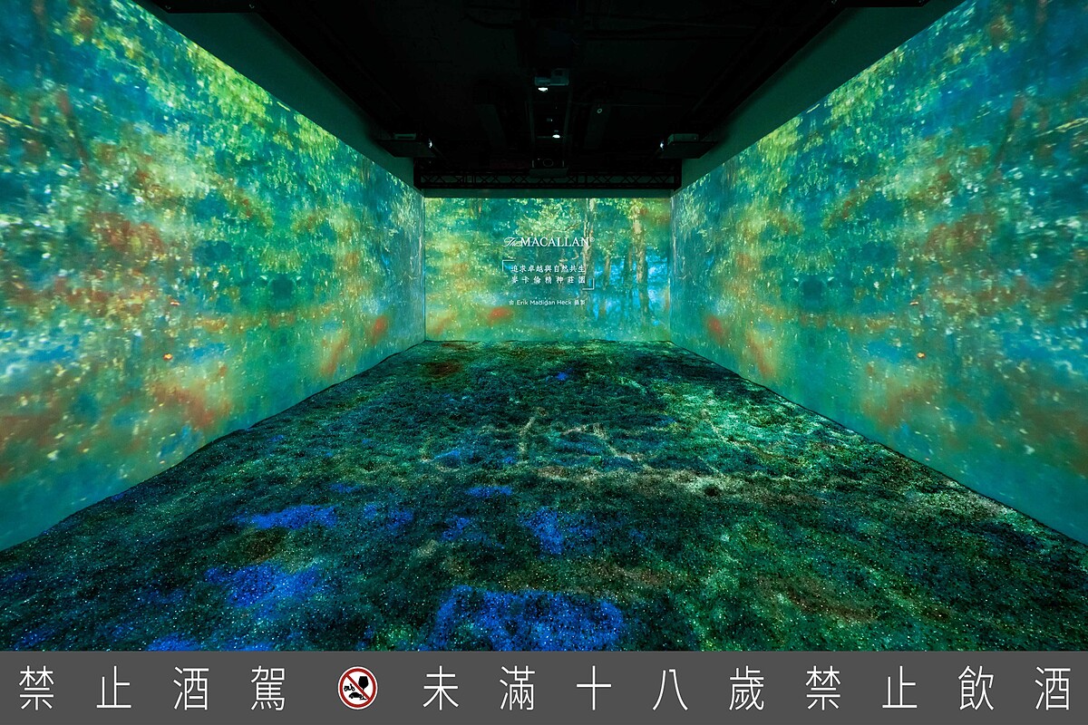 展區「時流礫影」由光影、聲音、觸覺堆疊的沉浸式體驗,踏著絢麗多彩的玻璃沙礫「亮彩琉璃」,引領觀影者走進麥卡倫精神莊園坐落的蘇格蘭斯佩河畔,春池玻璃吳庭安表示:「麥卡倫威士忌的風味經過時間淬鍊,如同每粒玻璃沙礫經歷道道手續精煉方得圓滿,而時間即是唯一的解答,『時流礫影』呼應麥卡倫對於極致工藝的堅持,將玻璃沙礫擬為大地風土,引領眾人一起體驗『追求卓越與自然共生』的麥卡倫精神。」。