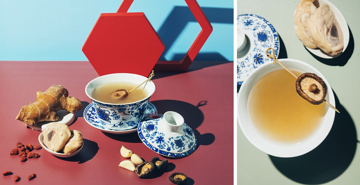 以台灣經典湯品蒜頭雞湯為原型,加入香菇,老薑,枸杞提出濃郁回甘的口感,再加入富有堅果油及香草香料的波本威士忌,佐以些許紹興酒提出湯的鮮甜滋味,最後放入畫龍點睛的蔘茸酒賦予整杯調酒草本清香的風味,猶如在冬夜回到溫暖的家,喝上一碗家人親手煲的濃醇酒感雞湯,讓你在寒冷冬季暖心且暖胃。