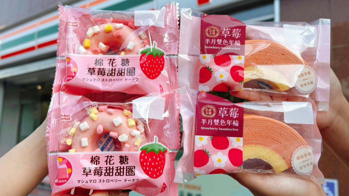 不喜歡吃冰的草莓控也不用擔心,年輪蛋糕系列新品祭出「草莓雙色半月年輪」,厚切年輪蛋糕,有草莓和原味兩種風味,味蕾大滿足。還有與Mister Donut共同合作開發的便利甜甜圈,新品「棉花糖草莓甜甜圈」,300間7-ELEVEN複合 Mister Donut專櫃也開賣人氣商品 「3重草莓波堤」。