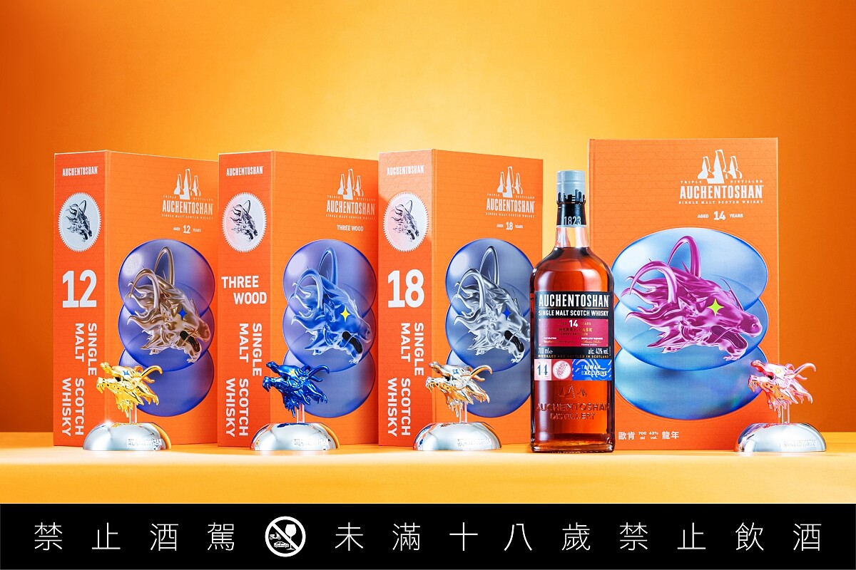 三得利 Beam Suntory 旗下「歐肯(Auchentoshan)單一麥芽蘇格蘭威士忌」擁有超過 200 年的悠久歷史,秉持「肯為美好、再多一次」的精神,成為蘇格蘭唯一全品項經3次蒸餾的威士忌酒廠。延續去年好評!歐肯威士忌再度攜手獲得國際紅點大獎及入選 2023 AGI 國際平面設計聯盟成員的葉忠宜設計師,以「好運龍總來」的理念,推出四款:12 年、14 年、18 年、三桶「歐肯招財龍威士忌禮盒」,為 2024 年獻上最有氣勢的新春禮盒!禮盒設計以錢進龍頭與招財龍破蛋意涵好運出龍,延伸酒標色系打造四款別具心裁的招財龍,分別包含:「萬金龍」、「藍朕龍」、「兆紫龍」、「白龍王」,待威士忌愛好者們收藏四款招財龍頭,「四龍聚寶」讓財富龍喜利耶!