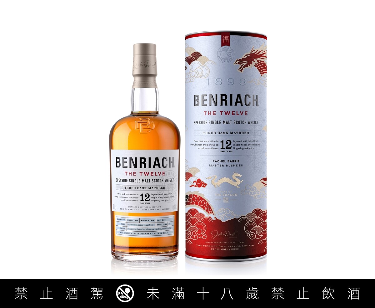 2024龍年限定的班瑞克12年單一麥芽蘇格蘭威士忌,包裝上仍保有班瑞克酒廠自然環境的代表色,透過金紅相間的别緻祥雲圖騰映出過年喜氣,搭配金色龍年標誌,別具收藏創意與趣味性。班瑞克邀請所有威士忌愛好者,一同在新的一年敞開胸懷,傳承初衷,迎接各面向的創新思維!酒液在雪莉桶、波本桶與波特桶等三種橡木桶中熟成至少12年釀造而成,充分展現馥郁雪莉口感,並與波本桶與波特桶交織,增添豐富的烘烤水果香氣,成就了斑瑞克12年的圓潤滑順。其酒體帶著琥珀色澤的深金色,縈繞豐富的楓糖蜂蜜、可可與烘焙過的漿果香氣。