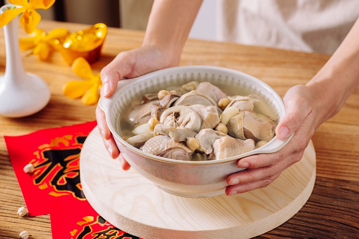 台北國賓飯店行政總主廚林建龍與副行政總主廚徐鳳欽聯手推出5款年年熱銷的「國賓珍寶」、包廂隱藏菜色「國賓台菜鯧魚米糕」及12道年菜單品。八人份的「國賓聚寶盆」,包含花膠筒、關西刺參、鵝掌等海鮮食材,搭配南非活鮑和竹笙熬煮8小時。另外還有「松茸花膠海味燉全雞」和「冠軍濃湯花膠排翅」,兩道湯品都結合了多種矜貴食材,口感豐富。國賓也推出「闔家歡」和「極品闔家歡」兩種佛跳牆菜餚,前者使用了中其翅、北海道干貝等食材,後者則再增加了花膠和南非鮑魚。此外,國賓的「國賓珍寶」採用了日本傳統工藝美濃燒「KOYO陶鍋」作為盛裝容器,提供了冷熱兩用保溫袋,年菜現已開放訂購,預訂並付清款項可享九折優惠。