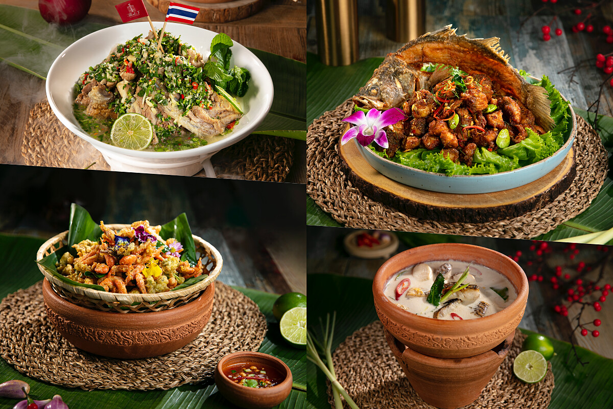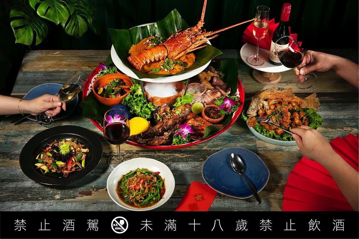 泰國華裔慶祝農曆春節,Thai J 泰式料理餐廳首推「宮廷皇室盛宴」雙層拼盤,獨創中泰料理選擇。主餐包括咖哩滑蛋龍蝦、泰式炸豬腳、香辣炒鱸魚、香草咖哩炒鱸魚,售價NT2,990元~3,990元,適合4~6人。底層盛大大圓盤涵蓋經典料理,如泰式櫛瓜、炙燒鮮魷、香爆豬肋排等。頂層主餐豐盛,特色龍蝦、炸豬腳,風味獨特,滿足品味享受。