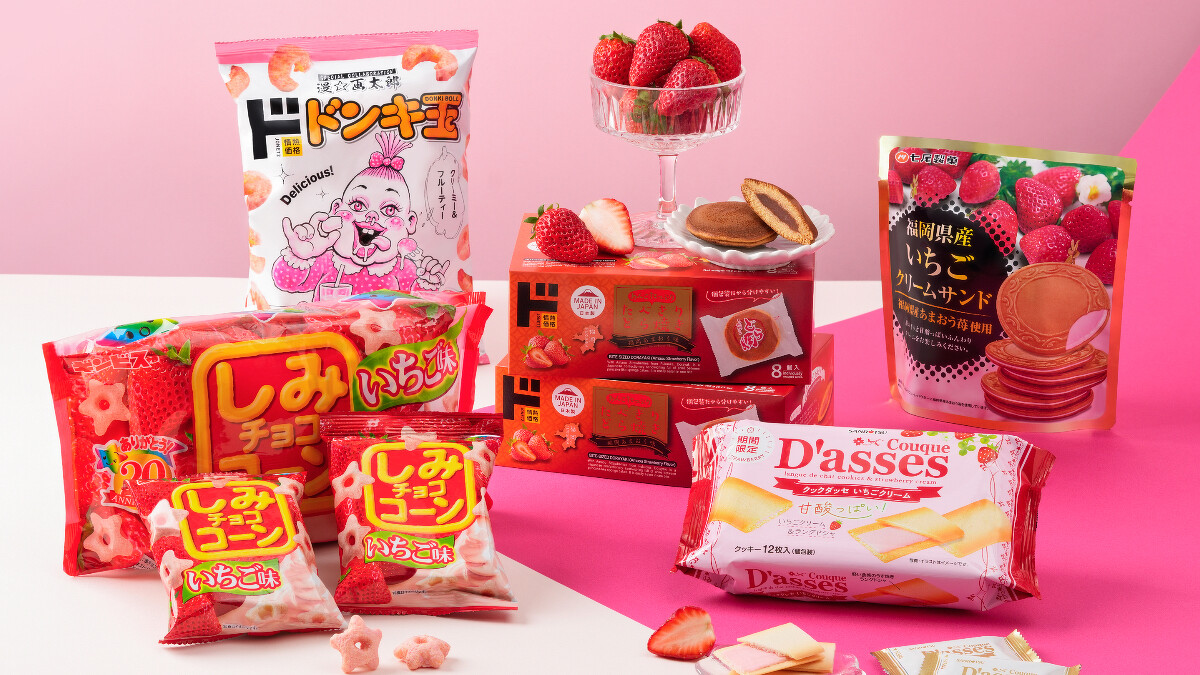 想要來場女孩們的粉紅泡泡下午茶嗎?唐吉訶德精選「DONKI玉草莓風味」、「GINBIS星星造型可可餅乾」、日本最熱銷的「三立草莓奶油風味薄燒」、薄脆爽口的「七尾福岡草莓法蘭酥」,以及唐吉訶德自有品牌「情熱價格銅鑼燒 草莓風味」,每樣都讓人愛不釋手。