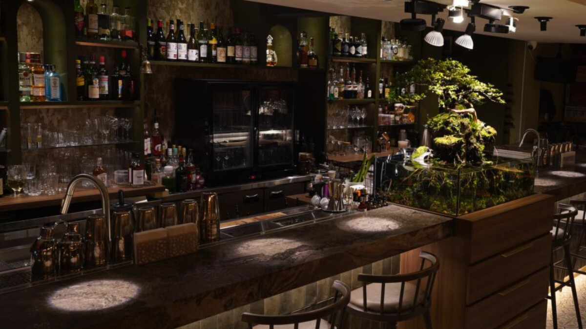 與自然共生酒吧,將森林元素融入空間並將食材完整運用於調酒創作,五感沉浸山林原始而內斂。