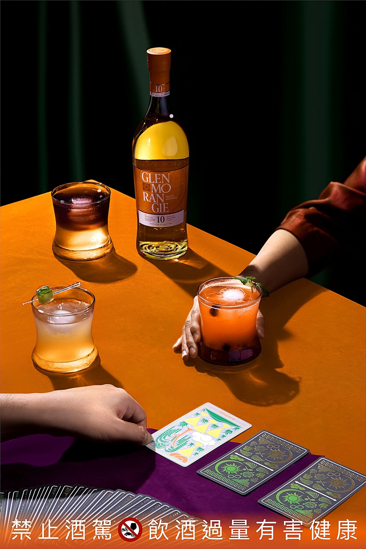 位於台北國泰萬怡酒店14樓的Drift Bar,攜手格蘭傑單一麥芽威士忌Glenmorangie,以旗下的經典格蘭傑10年、格蘭傑12年雪莉桶、格蘭傑14年波特桶酒款做為基底,並把塔羅占卜作為主要形象,呼應其品牌標語「趣‧味 妙不可言」,打造9款「無限暢飲」調酒酒單,包含命運之輪、節制、戀人、世界、惡魔、星星、太陽、月亮、魔術師,為品酩時光更添趣味話題,另有3款純飲提供,包含愚者、隱者、審判。