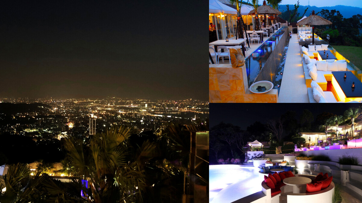 屋頂上也主打峇里島南洋風情,將絕美陽明山夜景盡收眼底外,從中式的熱炒、火鍋和燒烤到異國料理通通有,酒類選擇也非常多。室外座位店家還貼心地打造成階梯狀,不會被擋住視線,還有圓弧狀無邊際水池的夜景桌位,水池還會變色,是夢幻又放鬆的情侶度假聖地。