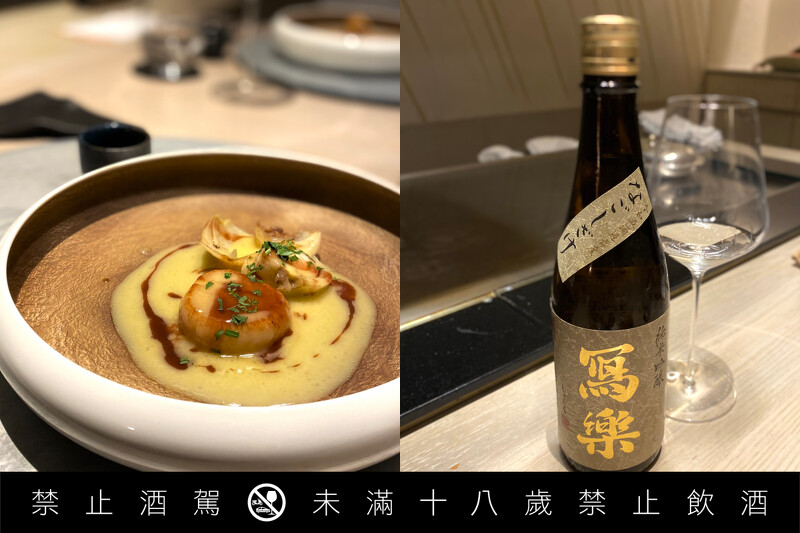 雖然大家對干貝的印象就是生吃,但日本貿易振興機構也強調,以不同料理形式去襯托口感也能嚐見精彩風味,這道「香煎扇貝、百合根、奶油白醬」以奶油白醬與乾煎後的肥美干貝組合,搭配曾摘下 SAKE COMPETITION 比賽最高金賞的「寫樂 純米吟釀 羽州譽」,酒款經些微熟成後口感圓滑,搭配奶油白醬的扇貝可以引出兩者的香甜風味。