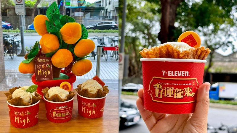 7-11的3款冰品「桔運龍來橘子風味思樂冰」、「鈔桔綠HIGH不知火橘霜淇淋」、另有「COLD STONE蘋安旺來酥冰淇淋」將於從2/7開賣,每支售價49元,象徵龍年「大桔大利」、「蘋安旺旺來」。其中全新霜淇淋新口味「鈔桔綠HIGH不知火橘霜淇淋」使用的是日本進口愛媛縣不知火橘原料製成,強烈橘子香氣與酸甜爽口味道,彷彿童年回憶裡的橘子糖果。