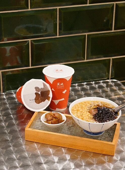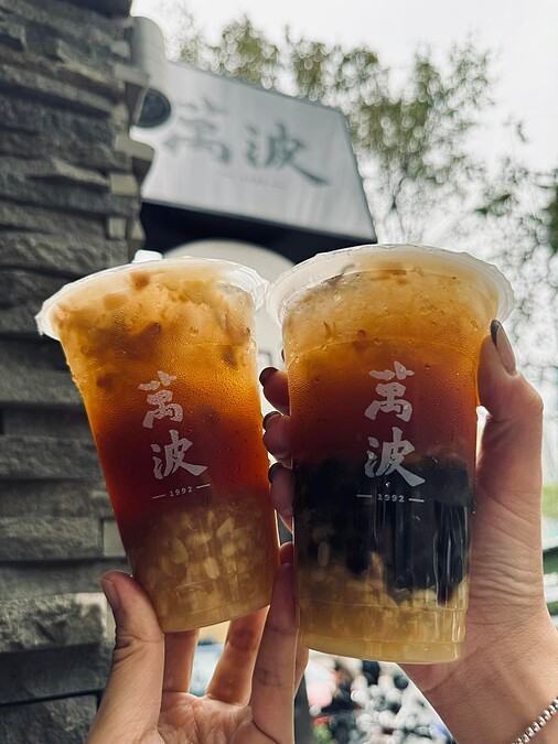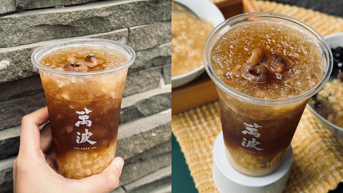 總是將古早味驚喜呈現在飲品當中,無論是「楊枝甘露」、「情人果冰」或是「酸梅冰」,都成了《萬波》的創意之作,這回又再將懷舊甜品綠豆蒜重新詮釋,打造出手搖版「桂圓綠豆蒜」。
