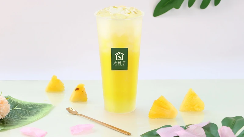 金鑽鳳梨又稱春蜜鳳梨,產期是3至5月,大苑子看準這波商機,特地推出「鳳梨冰茶」、「芭梨戀人」,從3/2開跑。芭梨戀人使用金鑽鳳梨和甘甜芭樂,將鳳梨的酸甜滋味巧妙融合芭樂獨特香氣;鳳梨冰茶雖然名為「冰茶」,但沒有添加任何茶葉,是以鳳梨和其他水果製成的純果汁。