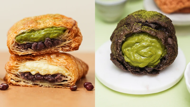 「抹茶歐蕾泡芙」來自靜岡的抹茶粉加入beard papa’s獨家經典卡士達,再與鮮奶油輕拌揉合製成嫩綠色的抹茶歐蕾卡士達內餡,最後在泡芙外皮撒上抹茶粉。「紅豆派」則是將來自法國的頂級奶油拌合煮透的紅豆,製成香氣馥郁且口感綿密的紅豆餡,再用純手工將紅豆餡包入千層派皮,烘烤之後的派皮層層蓬鬆堆疊,2款新品3/1~3/31開賣。