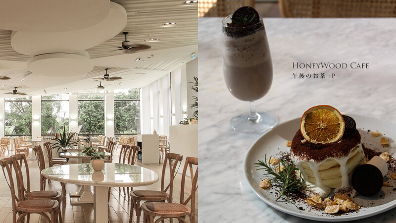 HoneyWood Café是由婚宴會館晶麒莊園的部分空間打造而成,裝潢會多有質感可想而知。戶外有大草皮、異國感教堂及三角木屋,無論白天或晚上都非常浪漫,室內座位則是以大量白色內裝搭配木頭椅,怎麼拍都是網美。店家採用平鎮自家烘焙的咖啡豆,喝起來更香濃順口,甜點當然也很優秀,記得一定要點舒芙蕾。