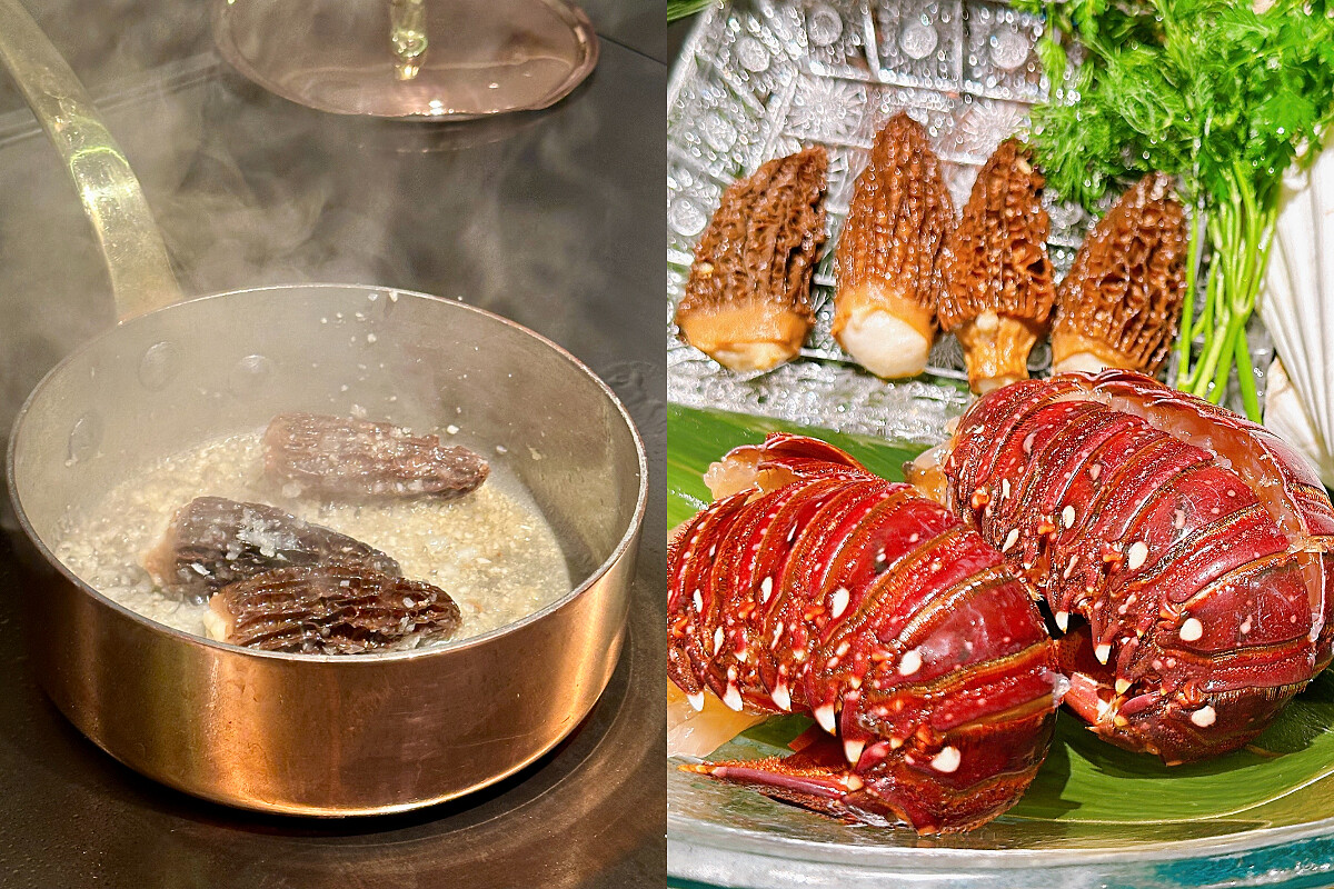 淋上帶榛果香氣的米莫雷特起司,搭配羊肚菌與干貝奶油,並以白酒與奶油取得絕佳平衡,整體醬汁帶著酸味,完美襯托龍蝦甜度。