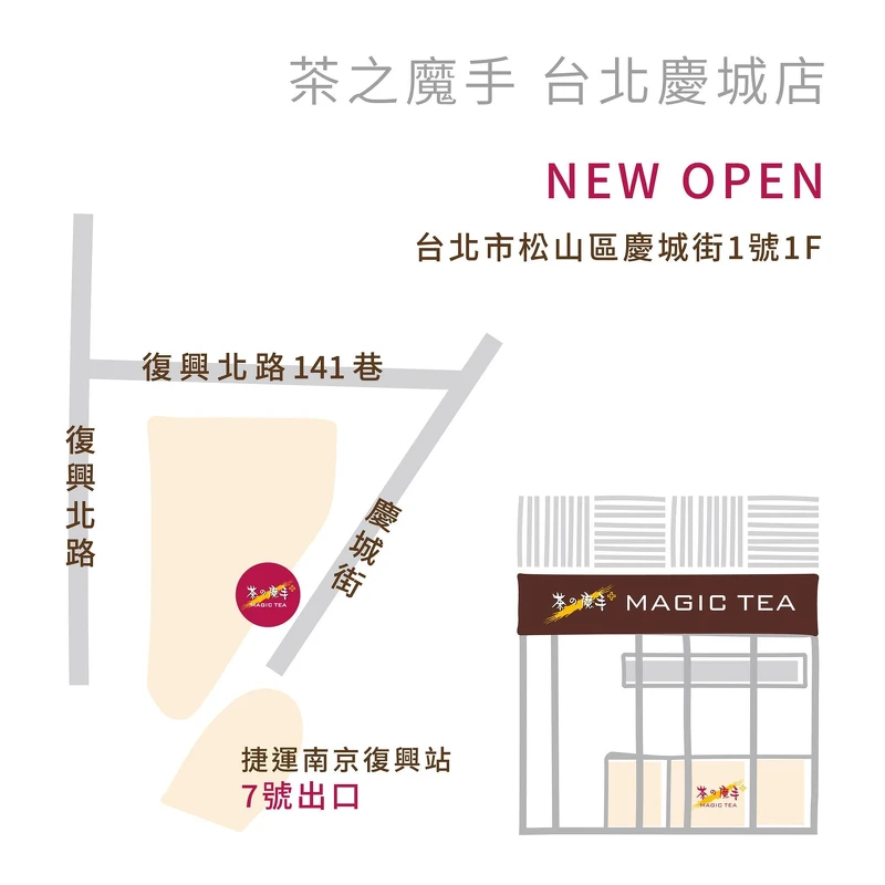 對於品質的堅持讓茶之魔手闖出一片天,目前600百多間門市大多開在南部,隨著事業版圖逐漸擴大,連在海外、澎湖等地都能見到其身影。現在台北慶城店終於要在3/24早上9點開店啦,地址就在慶城街1號1樓,捷運站從南京復興7號出口走出去就可以看到囉!