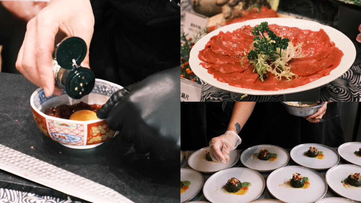 史達魯分別負責春、秋兩道料理,「春」選用牛腹部中被脂肪所包覆名為法蘭克的部位,其肉質相當有彈性且具有豐沛的肉汁,放上牛肉後點綴上數種不同方式醃漬蔬菜,帶出豐富的口感層次,再加上鮮甜筍湯,讓人忍不住一喝再喝。「秋」特別選用三種豆瓣製成醬汁,搭配同樣有著豐富纖維感的蕈菇,點綴上雲南箘子油,肉片與蕈菇在口中咀嚼形成一種持續散發鮮甜的完美組合。