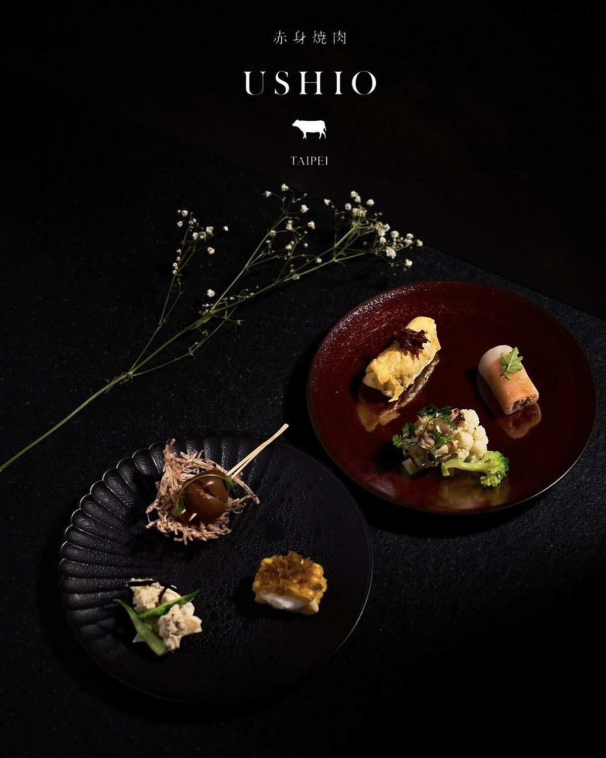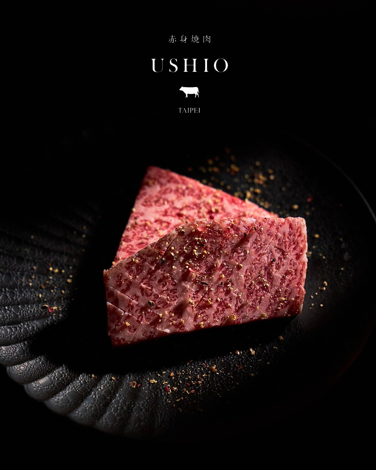 「赤身和牛USHIO」總店位於福岡的USHIO,台灣首店選自鹿兒島縣的A5頂級黑毛和牛,並採空運方式維持鮮度,為了不流失其美味,更採高成本的冷藏,並搭配來自日本福岡本店的調味料。到此用餐的顧客,除了全程由專業人員代烤呈現最完美滋味外,主廚更以多部位、多菜色逐道慢食呈現。