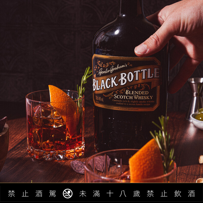「Black Bottle 黑瓶蘇格蘭威士忌」源自維多利亞時代,在1879年由蘇格蘭葛拉漢三兄弟創新調和,創造出神秘配方,並創下一頁威士忌史傳奇。睽違一百四十五年後,其獨特調和風味仍持續進化,至今仍啟發著今日調酒師,因為保持煙燻與花果香的均衡,散發深金色的神秘氣息,吸引眾多品味者。