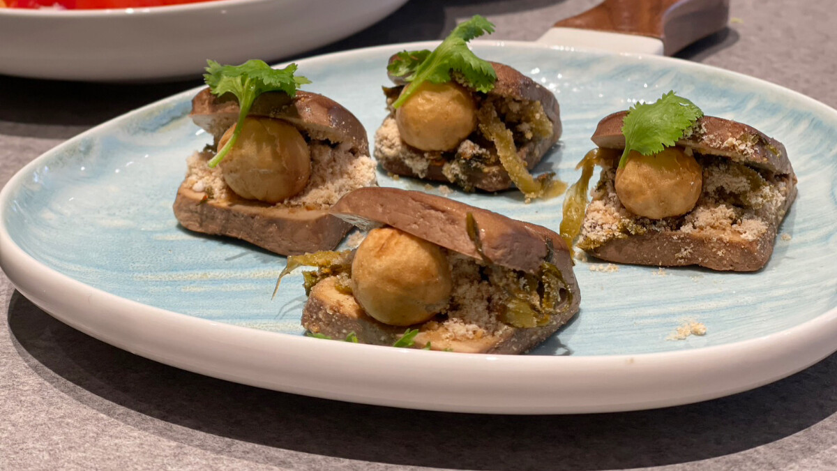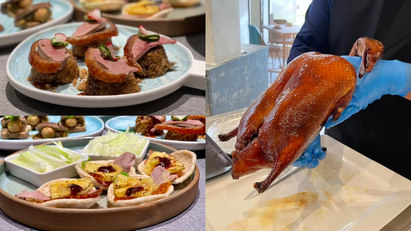 「鴨味米糕」以Q彈糯米、台南產的虱目魚鬆,搭配櫻桃片皮烤鴨,翻玩經典府城小吃。「酸菜湯圓豆干刈包」意含取自諺語呷豆干做大官,採用台南名店滷製的爆汁小豆干,將酸菜芝麻流沙湯圓包進刈包,鹹甜滋味讓人念念不忘。「炙燒鳳梨烤鴨」則是將烤鴨鋪底,放上安平蝦餅、炙燒台南關廟鳳梨片,還可搭配季節限定鳳梨蘸水或是花椒鹽。