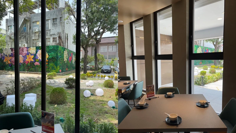 一走進享鴨「台南市長官邸店」印入眼簾的是綠意盎然的庭院,以「無境花園」為發想,除了有超級適合打卡拍照的彩繪牆外,還有4顆珍貴的老樹,無論是樹下小憩,還是悠閒地走一圈散步,都可以讓饕客們在進入餐廳前就先好好放鬆一下。